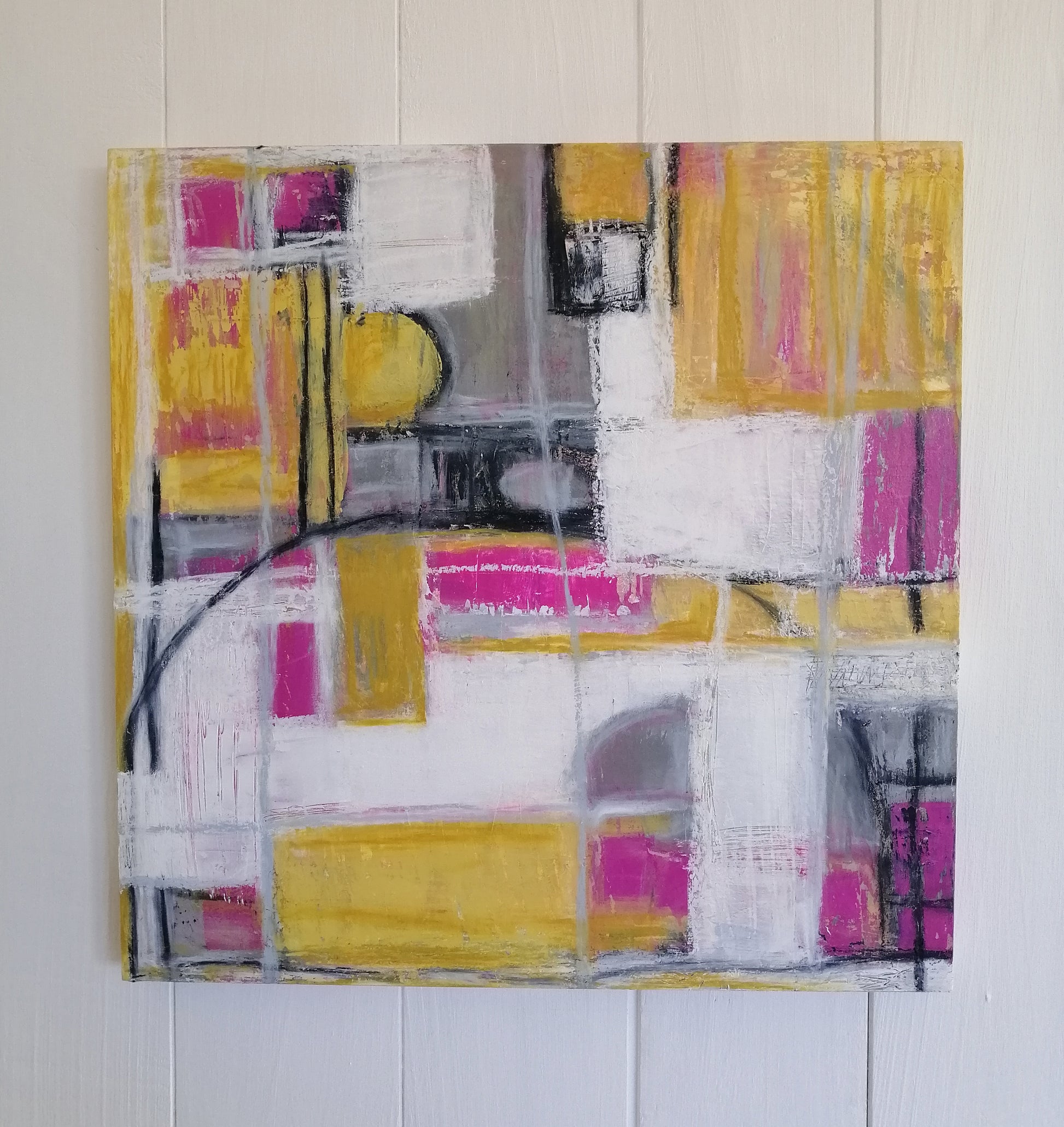 Original mixed media artwork - 30cm x 30cm (12"x12") - Acrylic paint, pencil, charcoal, pastel on cradled wood panel.